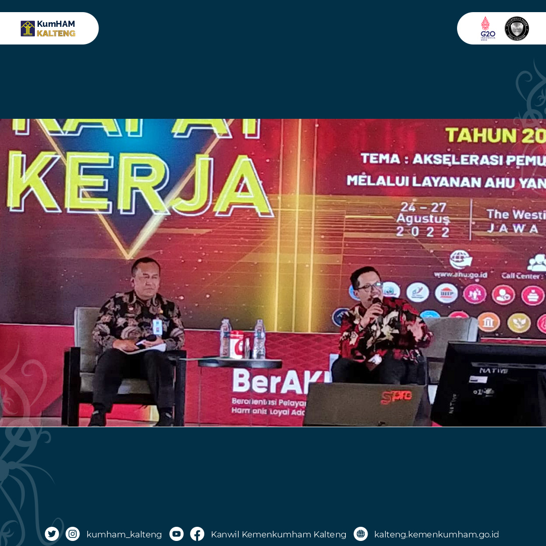 Kegiatan Rapat kerja yang dihadiri oleh perwakilan Kanwil seluruh Indonesia ini dibuka langsung oleh Direktur Direktur Jenderal Administrasi Hukum Umum (Cahyo Rahadian Muzhar) sekaligus memberikan arahan terkait evaluasi kinerja dan anggaran serta strategi peningkatan Layanan Administrasi Hukum Umum di Wilayah. Pada kesempatan yang ini juga dilakukan launching Aplikasi Kurator dan Pengurus Terpadu Direktorat Jenderal Administrasi Hukum Umum. (Red-dok, Humas Kalteng, Agustus 2022)